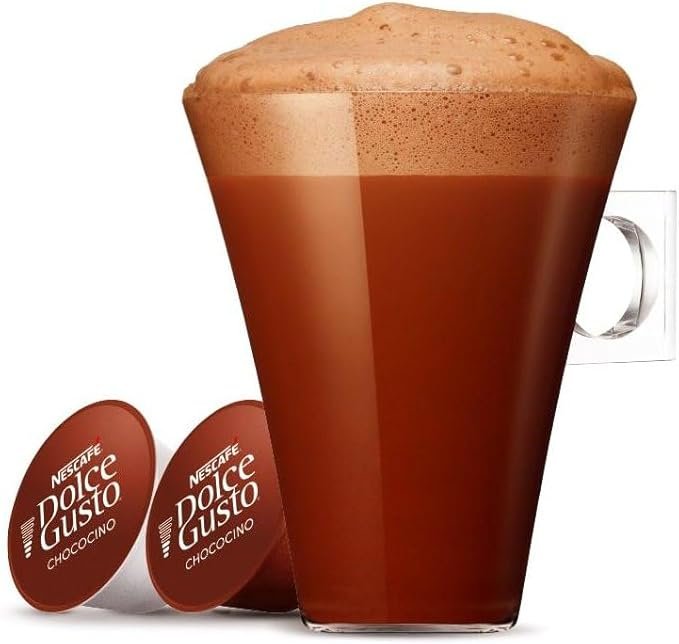 - MODO DE PREPARO: após preencher o recipiente da sua máquina Nescafé Dolce Gusto com água, coloque uma cápsula Nescafé Dolce Gusto Chococcino por vez, ajuste a quantidade de água sugerida da primeira cápsula, que são 3 níveis para a cápsula branca e 3 níveis de água para a marrom, e ligue sua máquina no modo quente, um por vez.
