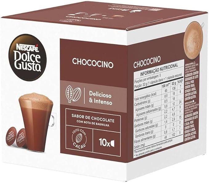 - CHOCOCCINO: Generoso como você! Sempre é hora de um bom chocolate! Quando a família se reúne nada melhor do que aproveitar o momento com uma xícara do seu melhor chocolate. Aprecie sua textura generosa e o gosto intenso de chocolate com notas de baunilha, feito com grãos de cacau de alta qualidade. São 10 cápsulas para aproveitar e saborear.